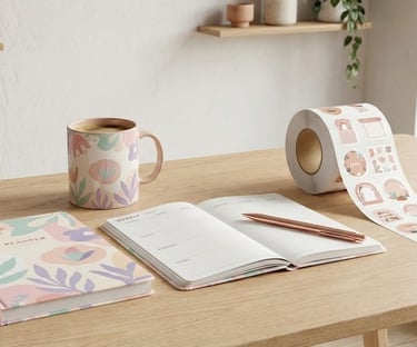 Ofereço um portfólio que abrange desde a papelaria personalizada, até a linha têxtil com personalização exclusiva. Sua necessidade é o meu próximo projeto.